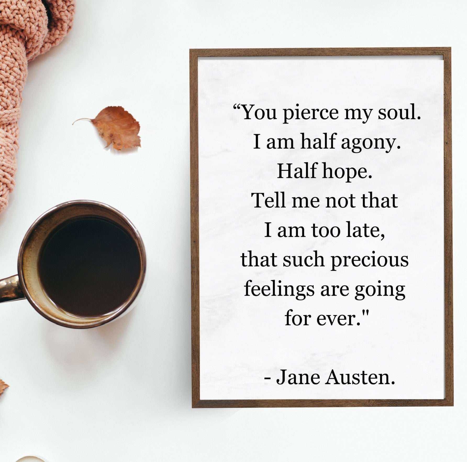 Bring timeless elegance into your space with this Jane Austen quote literary wall art print, now available in 3 different colors. This farmhouse style decor piece is the perfect addition to any book lover's home, adding a touch of charm and sophistication. Celebrate your love for classic literature with this unique and stylish gift that will surely stand out in any room.