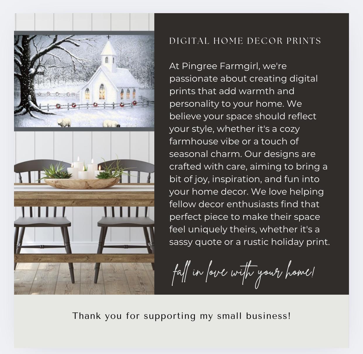 Add a touch of rustic winter charm to your home with this Winter Scene Art Print, featuring a quaint white church, peaceful sheep, and softly snow-covered trees. This Serene Winter Landscape Poster is designed to bring the quiet beauty of a winter morning indoors, perfect for farmhouse, rustic, or vintage-inspired decor. The neutral tones and delicate details make this piece a lovely addition to any space, whether it’s your living room, entryway, or bedroom. Available as a high-resolution digital download, this print is easy to frame, making it a versatile choice for seasonal decorating or year-round rustic charm. A thoughtful holiday gift or an elegant accent for your own walls, this Winter Scene Artwork captures the warmth and tranquility of the season beautifully.