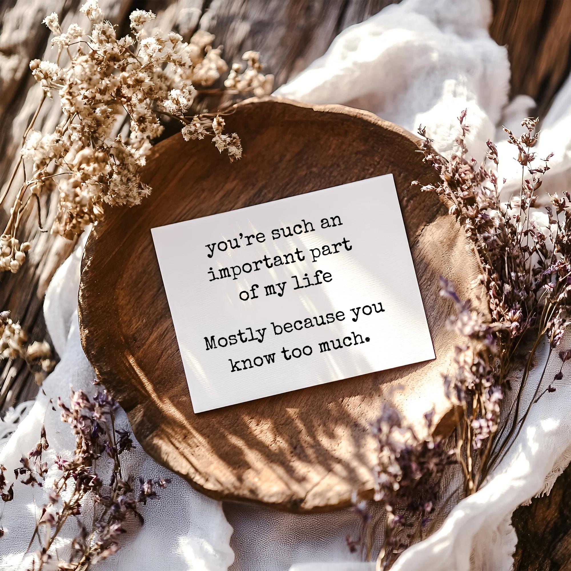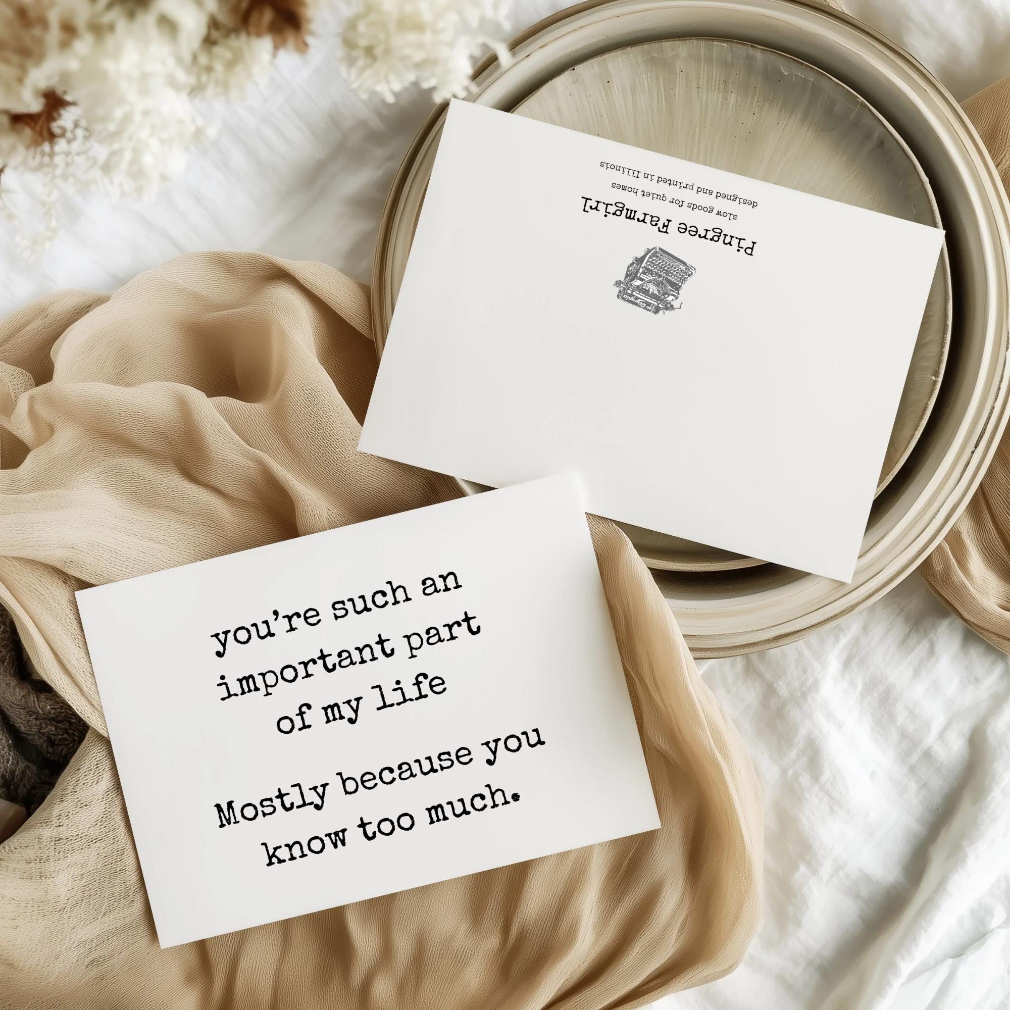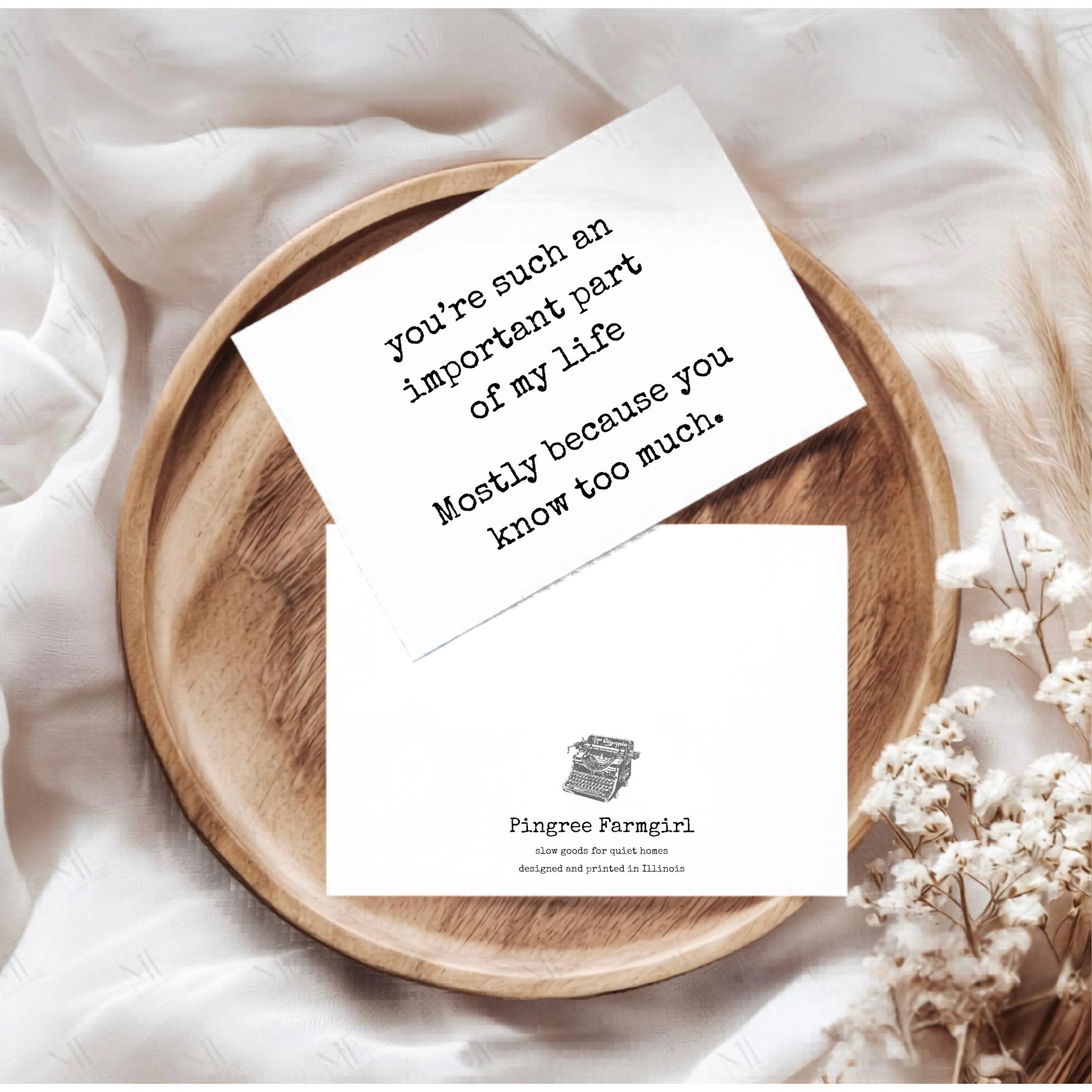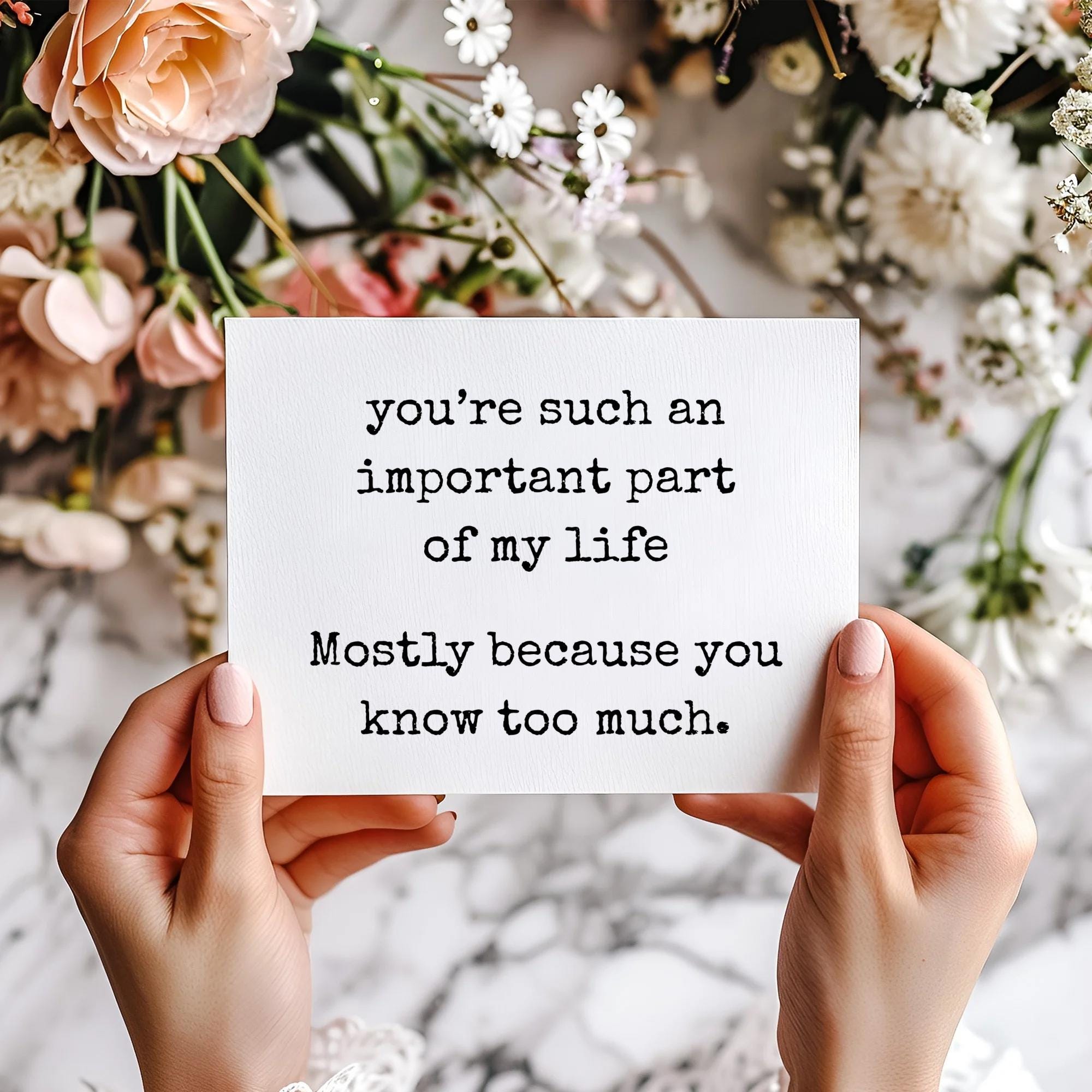 You Know Too Much Card, Funny Best Friend Card, Sarcastic Friendship Card, Bestie Gift, Women Humor