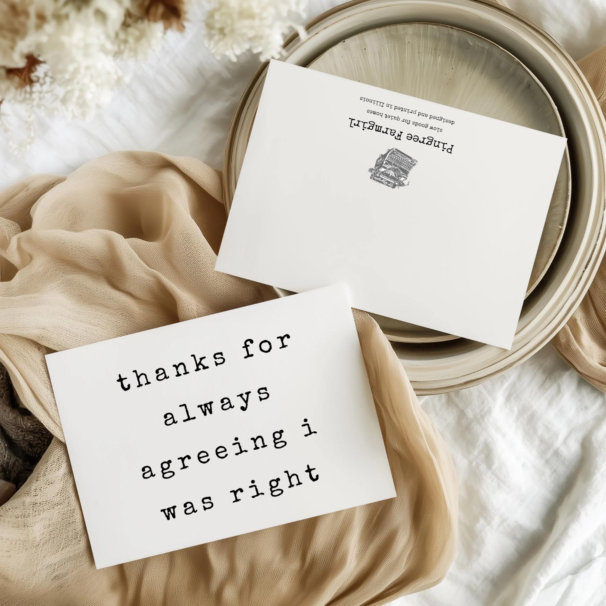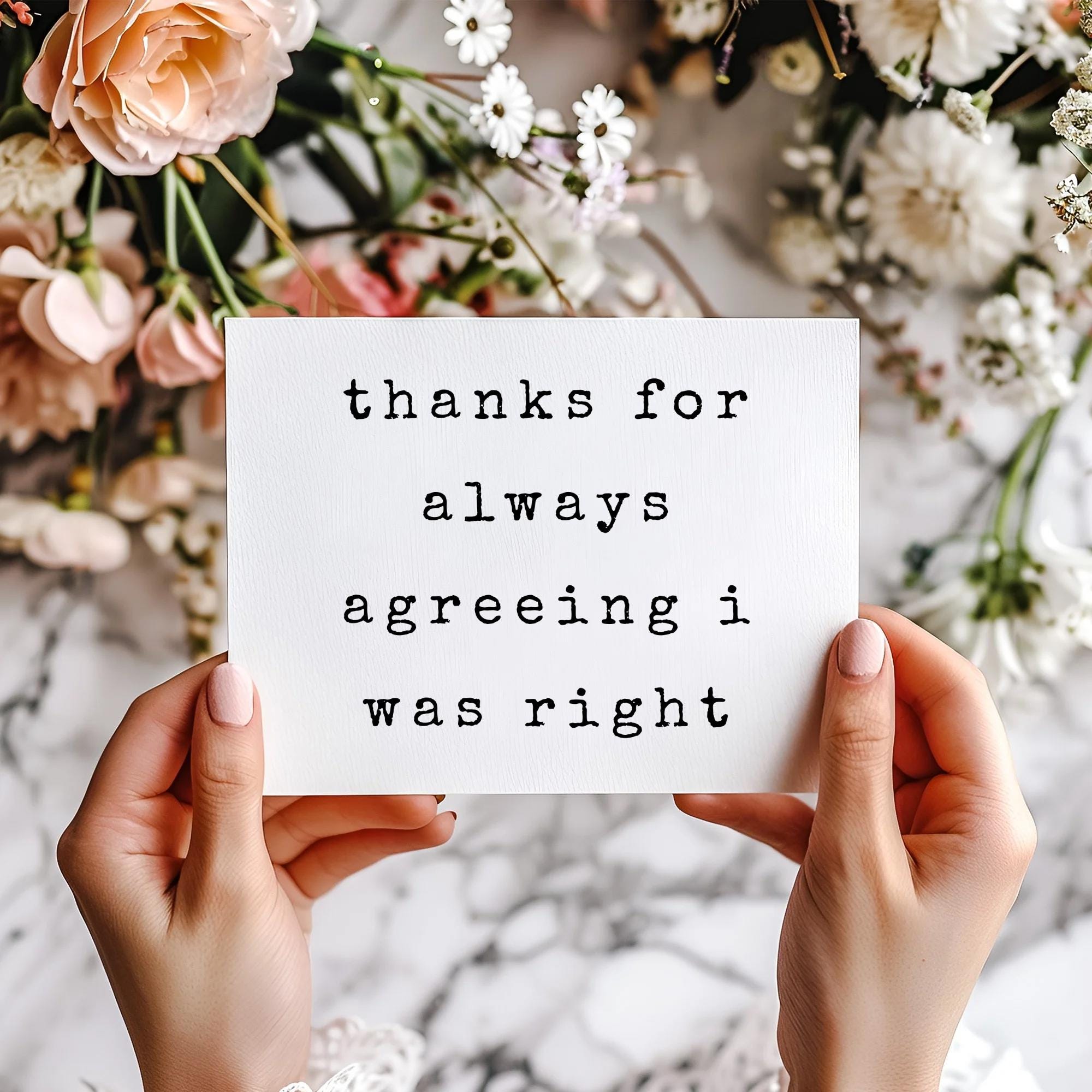 Thank You for Always Agreeing I Was Right Card, Funny Friendship Card, Best Friend Card, Sarcastic Humor Card, Women Gift
